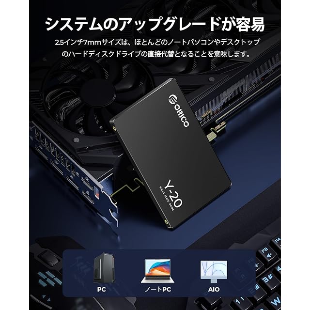 商品名:ORICO Y20 512GB 内蔵型SSD 2.5インチ 7mm 3D NAND採用 SATAIII 6Gb/s 最大読込:500MB/s (R:500MB/s、W:450MB/s) PS4動作確認済み 内蔵SSD 高耐久 メーカー 3年