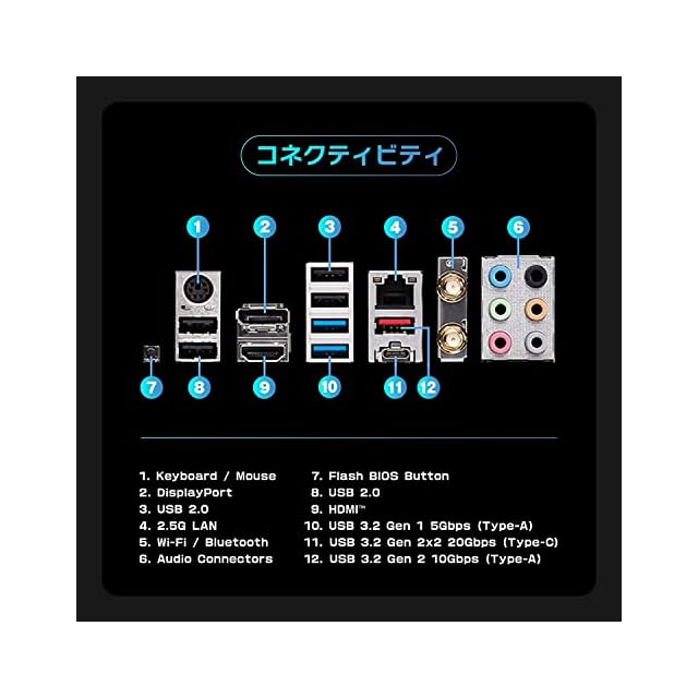 Intel 2.5G LAN + Wi-Fi 6Eを搭載し高速なネットワーク環境を構築することが可能です。