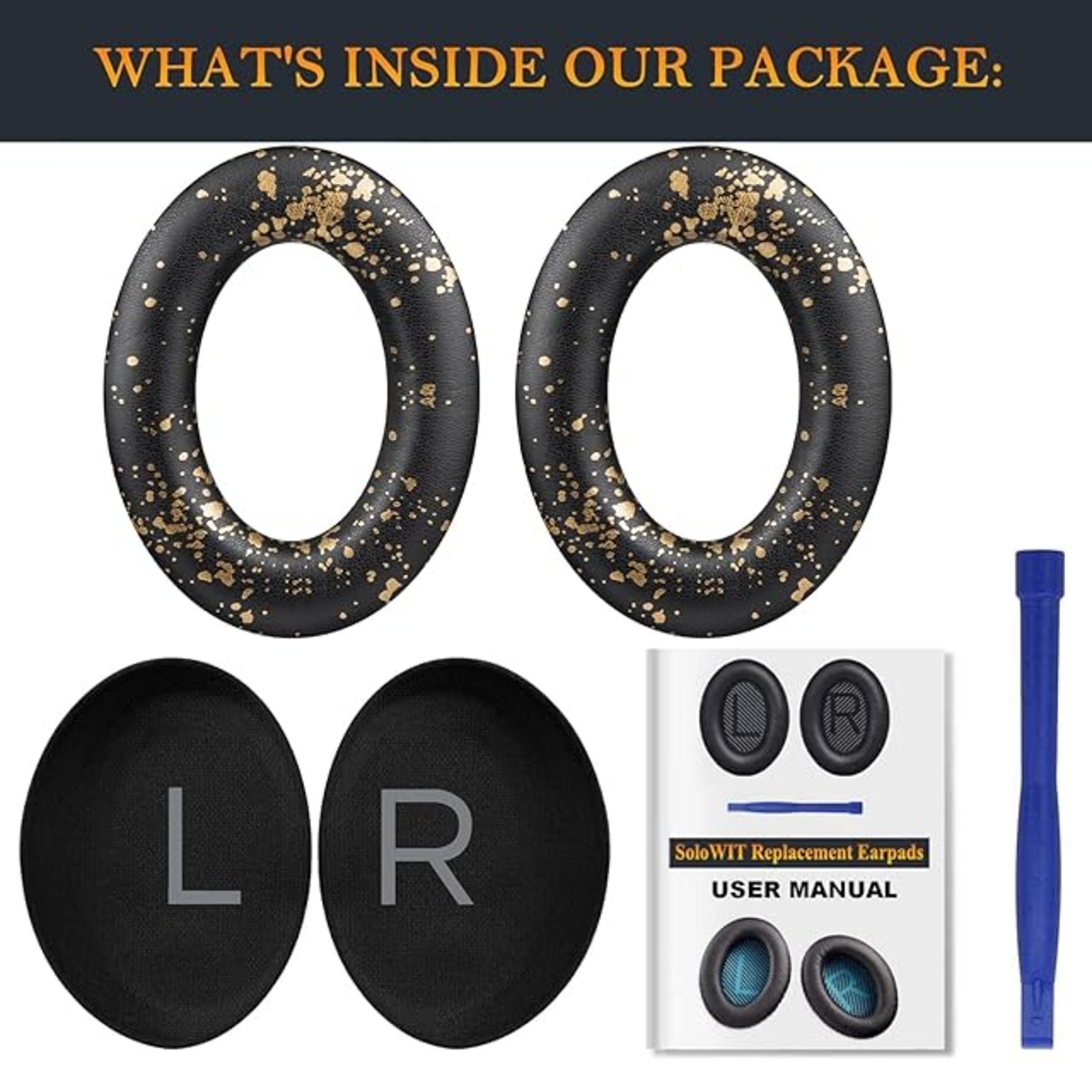 SOULWIT イヤーパッド イヤークッション Bose QuietComfort 45 (QC45)/QuietComfort SE (QC SE)/New Quiet Comfort Wireless 用 交換パッド ワイヤレスヘッドホン 耳当て 耳パッド ソフトレザー ノイズアイソレーション 高密度フォーム (ブラックゴールド) | TREND DESIGN 家電専門店