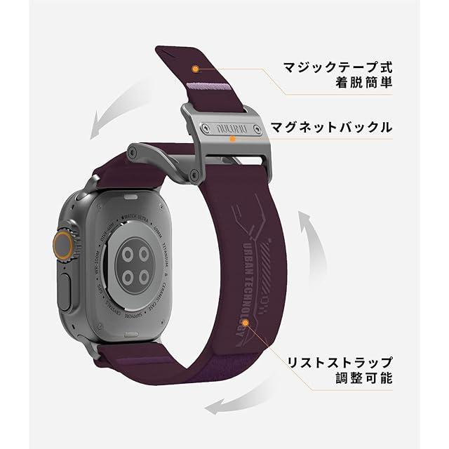 Aulumu A11 For Apple Watch 磁気バンド アップルウォッチ バンド For Apple Watch Ultra 2/1(49mm)、Series 10(46mm)、Series 9/8/7(45mm)、Series 6/5/4/SE(44mm)、Series 3/2/1(42mm)に対応しています 長さ調整可能 ステンレススチール製マグネット式バンド-ミッドナイトパープル | TREND DESIGN 家電専門店