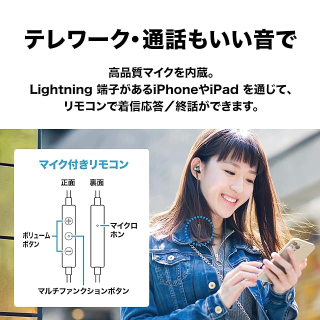 商品名:オーディオテクニカ ATH-CKD3Li BL マイク付きイヤホン Lightningケーブル 1.2m カナル型 ブルー 小型