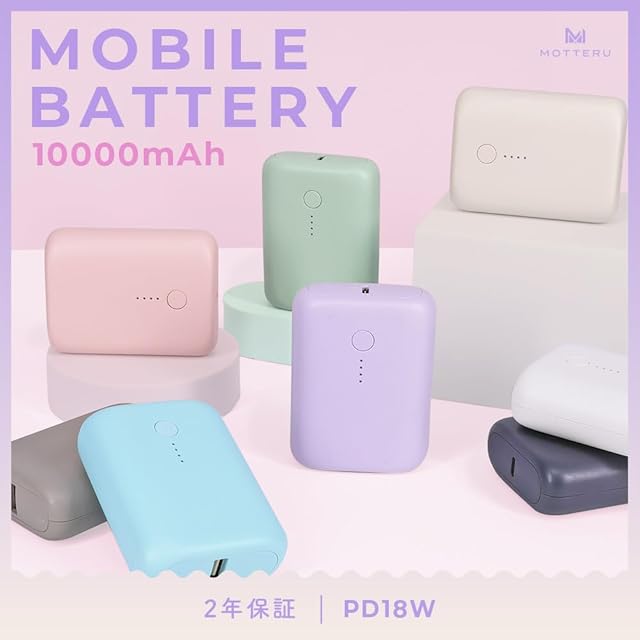 MOTTERU(モッテル) モバイルバッテリー 大容量 10,000mAh 174g PD18W入出力 PSE認証 iPhone16e 16 15 iPad Galaxy Android スマートフォン タブレット 各種機器対応 アーモンドミルク MOT-MB10001-AM | TREND DESIGN 家電専門店