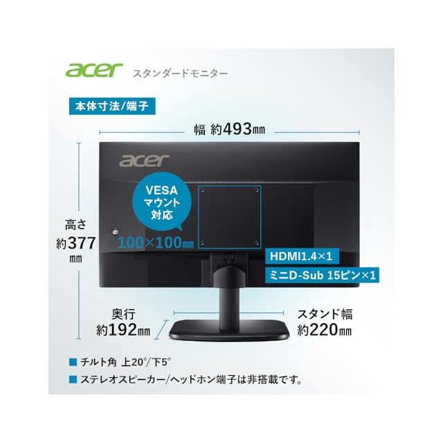 商品名:日本エイサー Acer モニター AlphaLine EK221QHbi 21.5インチ VA 非光沢 フルHD 100Hz 1ms(VRB) HDMI ミニD-Sub15 スピーカー非搭載 ヘッドホン端子非搭載 AMD FreeSync
