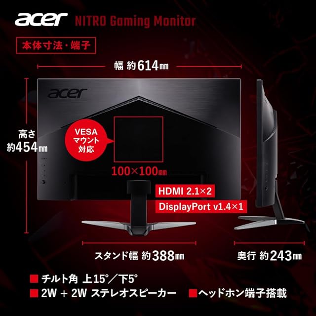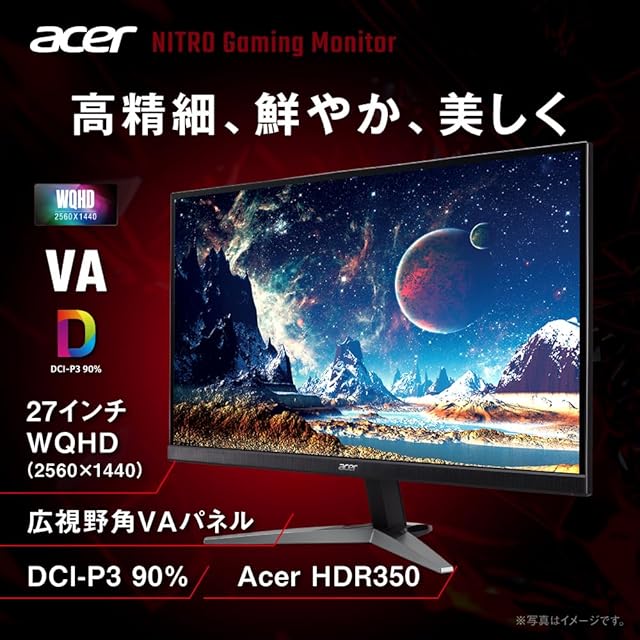 Acer Nitro ゲーミングモニター 27インチ WQHD 非光沢 広視野角 VA 240Hz 0.5ms(GTG) DCI-P3 90% AMD FreeSync Premium ブラックブースト HDR350 ゲームビューテクノロジー ブルーライト低減 HDMI 2.1 DisplayPort v1.4 スピーカー・ヘッドフォン端子 VESAマウント対応 KG271UXbmiipx | TREND DESIGN 家電専門店