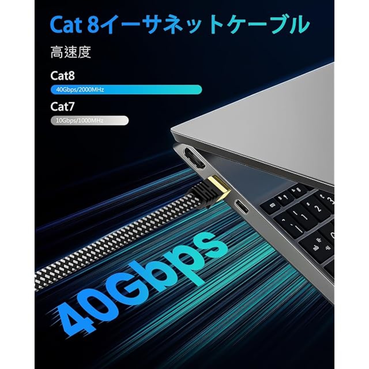 通信速度アップ: 有線lanケーブル カテゴリ8に準拠した高速LANケーブルで、次世代の40Gbps対応高速、2000MHz 伝送帯域幅のイーサネット環境を実現します