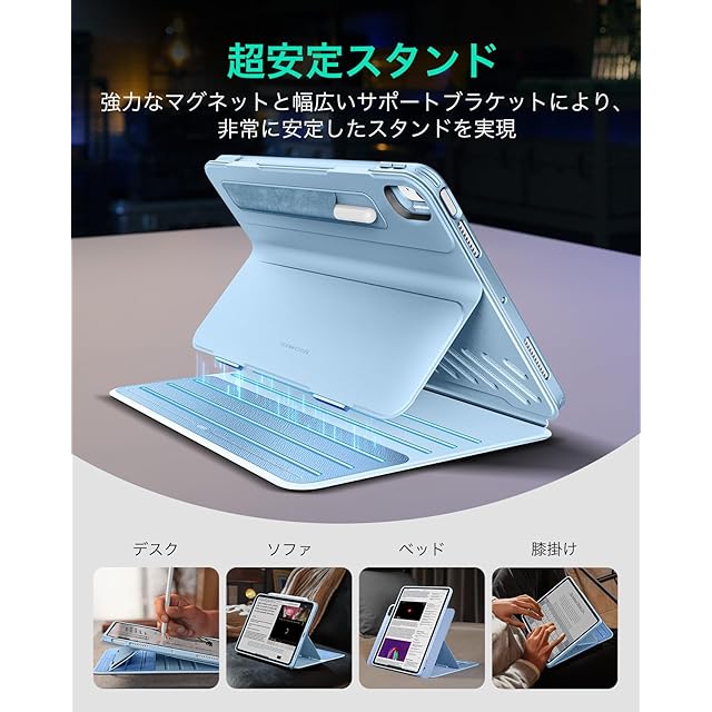 ESR iPad Air 11インチ ケース (M3/M2、2025/2024モデル) iPad Air 第5/4世代 ケース(2022/2020)専用 取外し可能なマグネットカバー付き回転式ケース 縦向き/横向きスタンド 9段階の角度調節可能 Pencil Pro/USB-C完全対応 Shiftシリーズ フレッシュ・ブルー | TREND DESIGN 家電専門店