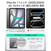 【互換性】:iPad Air 11インチ(2025/2024)、iPad Air 第5/4世代(2022/2020)専用です。モデル:A2902、A2903、A2316、A2324、A2325、A2072、A2588、A2589、A2591,他のiPadモデルと互換性がありません