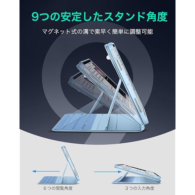 商品名:ESR iPad Air 11インチ ケース (M3/M2、2025/2024モデル) iPad Air 第5/4世代 ケース(2022/2020)専用 取外し可能なマグネットカバー付き回転式ケース 縦向き/横向きスタンド 9段階の角度調節可能 Pencil Pro/USB-C完全対応 Shiftシリーズ フレッシュ・ブルー
