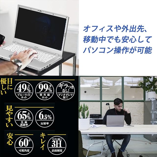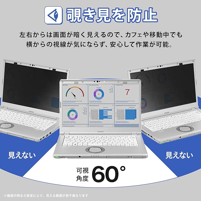 ◆【覗き見防止】 レッツノート CF-LVシリーズ パソコン画面の正面を中心に60°より外の角度からは画面が真っ黒に見える為、新幹線での移動中や出張先でも周りからの視線を防いで安心してパソコン操作ができます。