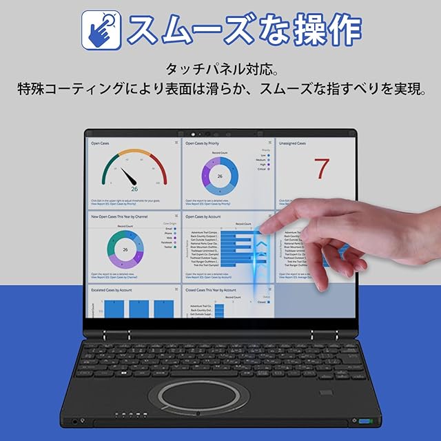 ◎両面使用可能:片面がアンチグレア(反射防止)で外光や照明などによる反射を軽減できます。片面が光沢で画像・動画にツヤを与え美しく表示します。 両面使用可能となっておりますので、お好きな面をお使いください。◎タッチパネルにも対応:特殊コーディングによって表面は滑らかになっており、Let's note SRシリーズやQRシリーズ のタッチパネルにも対応しています。