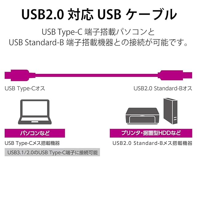 コネクタ形状:USB Type-Cオス - USB2.0 Standard-Bオス
