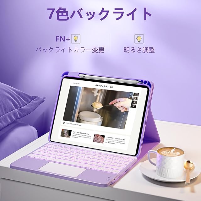 HETHOT iPad用 キーボード付きケース - 第11世代(A16,2025)/第10世代(2022) 11/10.9インチ 日本語JIS配列 7色バックライト防汚素材 脱着式 大容量バッテリー タッチパッド付きマグネット式 カラーキーボード ケース | TREND DESIGN 家電専門店