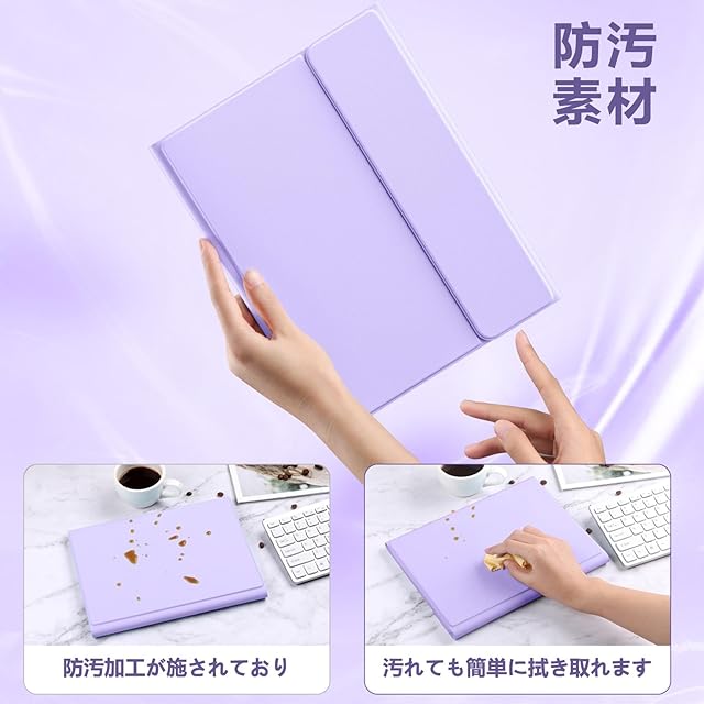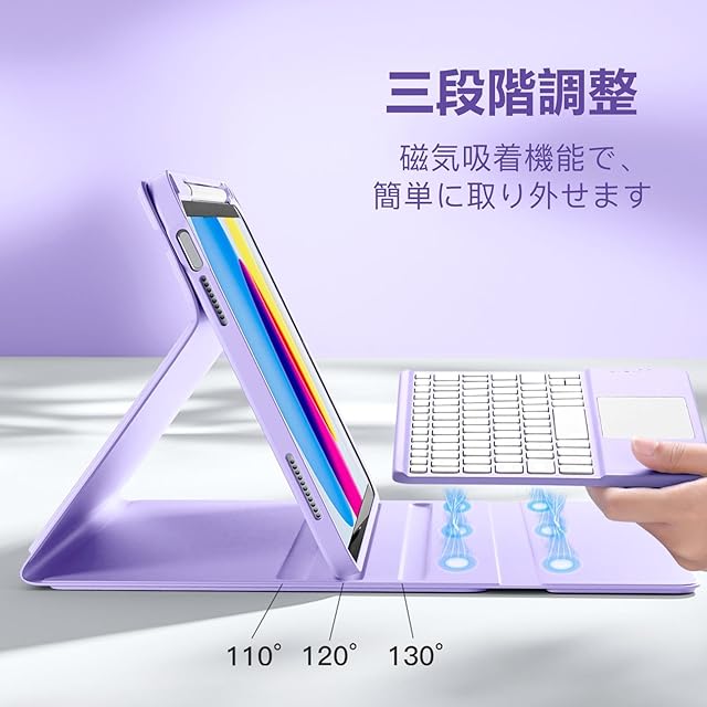 【脱着式キーボード&便利なApple Pencil収納】 キーボードは脱着式で、強力なマグネット内蔵により安定して装着可能。Pencilホルダー付きで、ペンやアダプタをしっかり収納。持ち運びも便利!作業や動画視聴に合わせて自由に角度調整可能。様々なシーンで活躍!