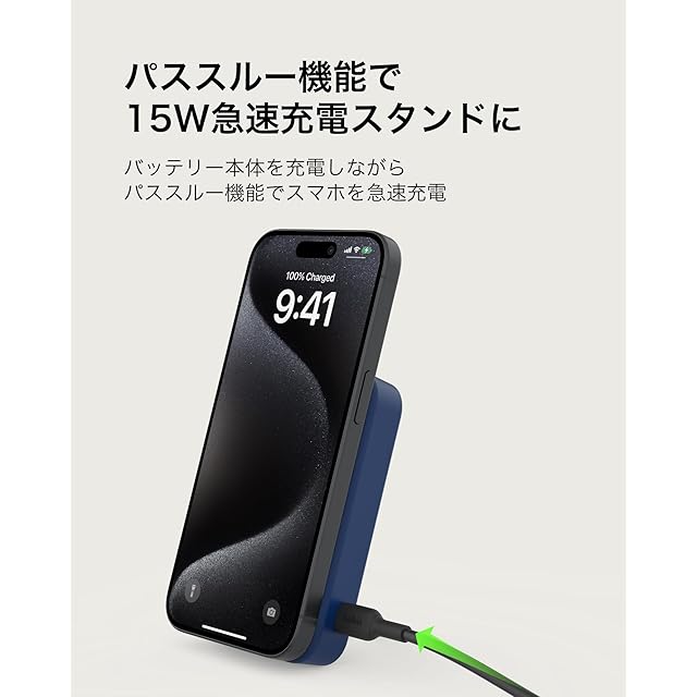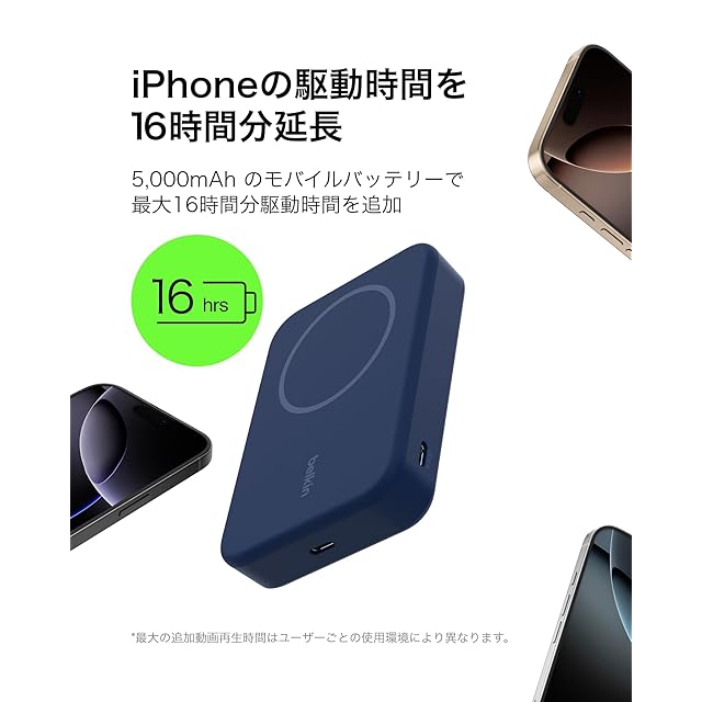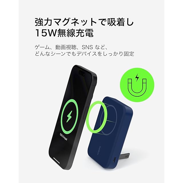 商品名:Belkin Qi2対応 ワイヤレスモバイルバッテリー 10000mAh iPhone 16/15/14/13/12/Qi2対応Android ワイヤレス出力(15W) Cポート入出力(2ポート) パススルー充電対応 PSE技術基準適合 機内持ち込み可能 充電用ケーブル同梱(USB-C to C 1m) メーカー2年 キックスタンド付き ブルー BPD008fqBL