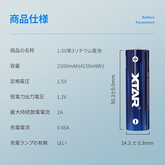 ⚡【4150mWhの電力量、強力な出力】XTAR 4150mWhリチウム電池は1.5V定電圧放電であり、高出力を続け、高動力製品をより効率的に運転させる。動力不足による電子製品の体験感の低下を避ける。