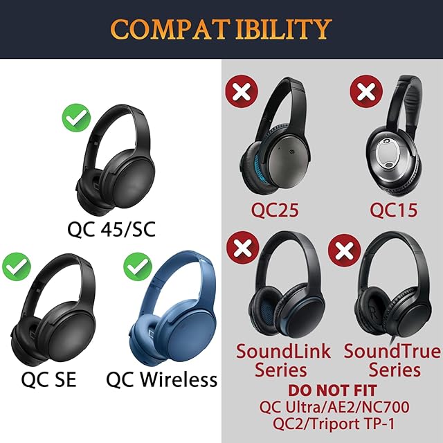 【対応機種】QuietComfort 45 (QC45)/QuietComfort SC (QC SC)/QuietComfort SE (QC SE)/New QuietComfort Wireless Over-ear ヘッドセットと互換性があります。