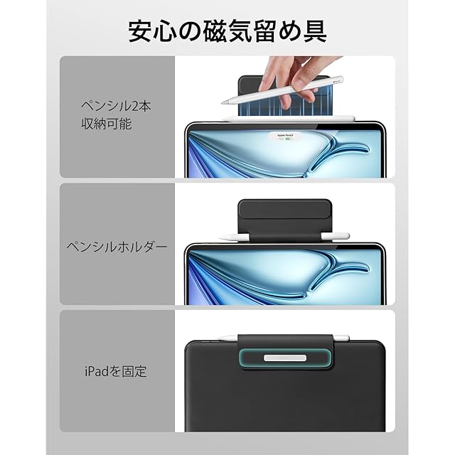 ESR iPad Air 11インチ(M3/M2、2025/2024)Air(第5/4世代)Pro 11インチ(第4/3/2/第1世代)ケース キーボード Magic Keyboard 便利にセットできるフローティングカンチレバースタンド 高精度マルチタッチトラックパッド Reboundシリーズ ブラック | TREND DESIGN 家電専門店