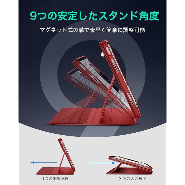 商品名:ESR iPad Air 11インチ ケース (M3/M2、2025/2024モデル) iPad Air 第5/4世代 ケース(2022/2020)専用 取外し可能なマグネットカバー付き回転式ケース 縦向き/横向きスタンド 9段階の角度調節可能 Pencil Pro/USB-C完全対応 Shiftシリーズ レッド