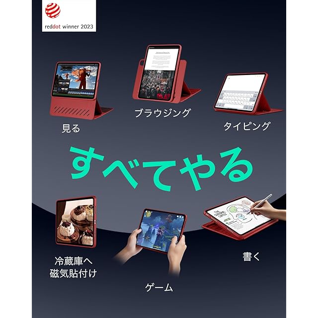 ESR iPad Air 11インチ ケース (M3/M2、2025/2024モデル) iPad Air 第5/4世代 ケース(2022/2020)専用 取外し可能なマグネットカバー付き回転式ケース 縦向き/横向きスタンド 9段階の角度調節可能 Pencil Pro/USB-C完全対応 Shiftシリーズ レッド | TREND DESIGN 家電専門店