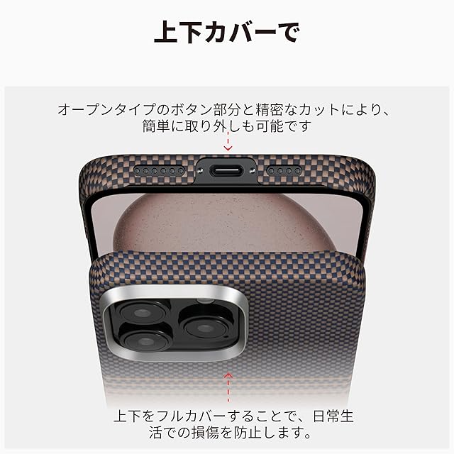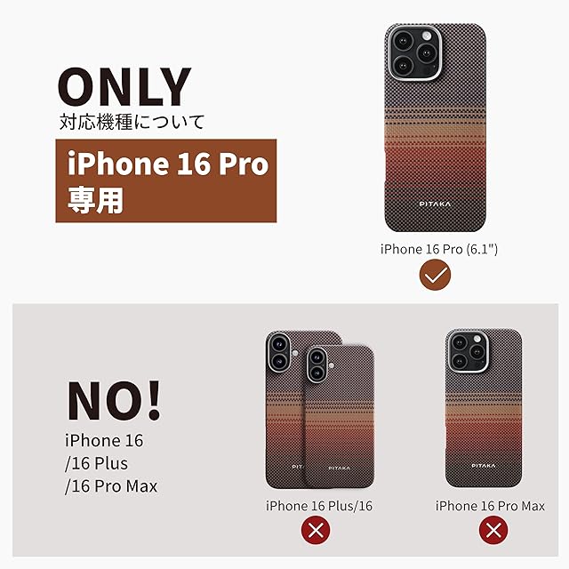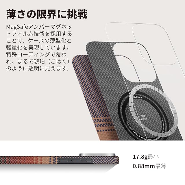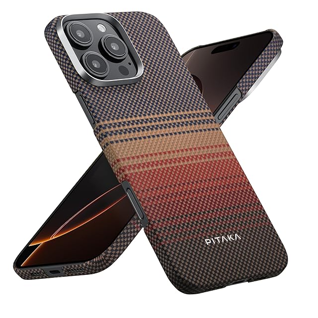 商品名:「PITAKA」 iPhone 16 Pro用 ケース アラミド繊維製 MagSafe対応 超極薄・超軽量 カーボン風 ワイヤレス充電対応 ミニマリスト シンプル (Sunset サンセット)