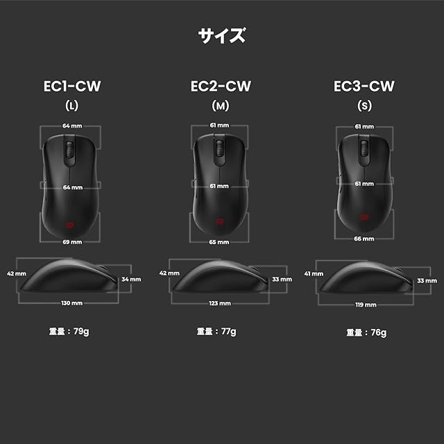 商品名:BenQ ZOWIE EC3-CW ワイヤレスゲーミングマウス(左右非対称デザイン/3370センサー/エンハンストレシーバー付属/右利き用/プラグ&プレイ) (Small)