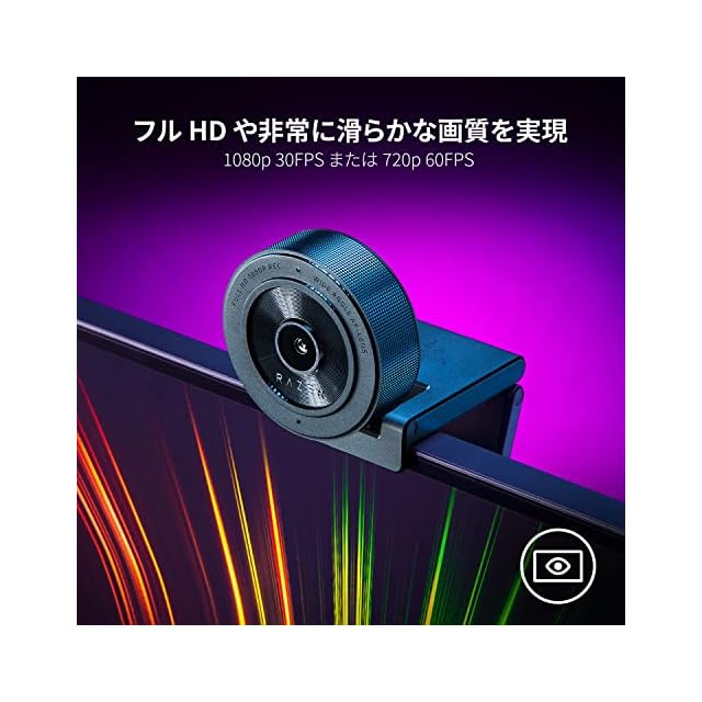 商品名:Razer Kiyo X ストリーミング ウェブカメラ Webカメラ USB 2.0 フルHD 1080p 30FPS / 720p 60fps オートフォーカス装備 カスタマイズ設定 207万画素 画角 82° 柔軟な取付けオプション Windows 10 / OBS/Xsplit 対応 【日本正規代理店品】 RZ19-04170100-R3M1