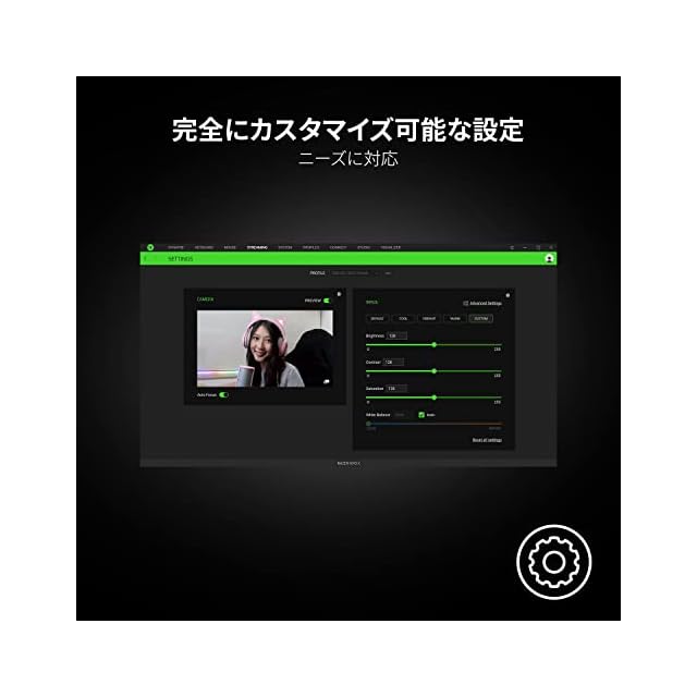 【完全にカスタマイズ可能な設定】 お気に入りの設定を残しておいたり、いくつかの設定を切り替えたければ、Razer Synapse でビデオ設定を保存しておいて、カスタムプロファイルを簡単に切り替えることで、どのような状況でも完璧な映像を映すことができます。