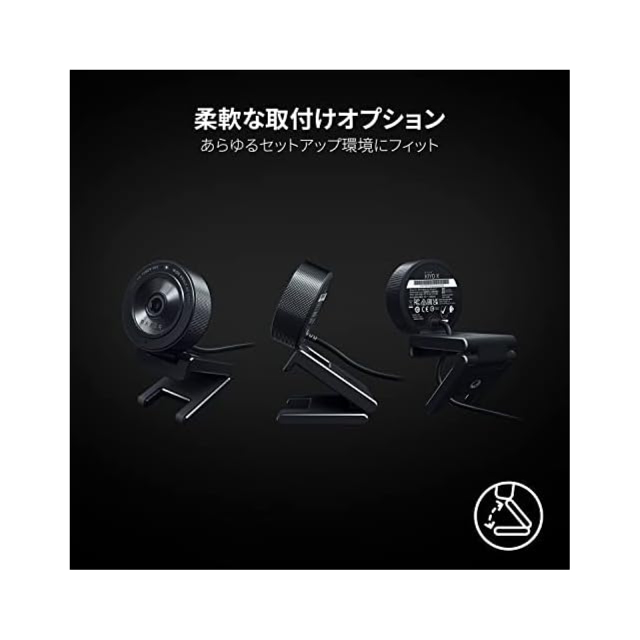 【柔軟な取付けオプション】 モニターにぴったりフィットする安定した Web カメラマウントで常に完璧な角度を維持でき、上下に傾けたり、取り外して Razer Kiyo X を三脚に取り付けることができます。