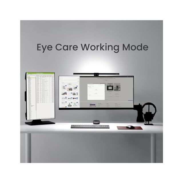 【間接照明モード】:新たな背面照明機能により、モニター画面とその周辺の光のコントラストを調整します。アップグレードした非対称配光デザインで、画面への映り込みを軽減いたします。デスク周りの明るさに応じて自動的に500ルクスに調整いたします。※同時点灯モード起動時、正面ライトが背面ライトの明るさに合わせて光を調整し、視覚の明暗差のバランスを取ります。