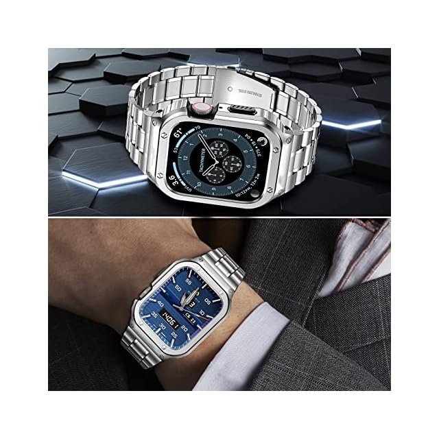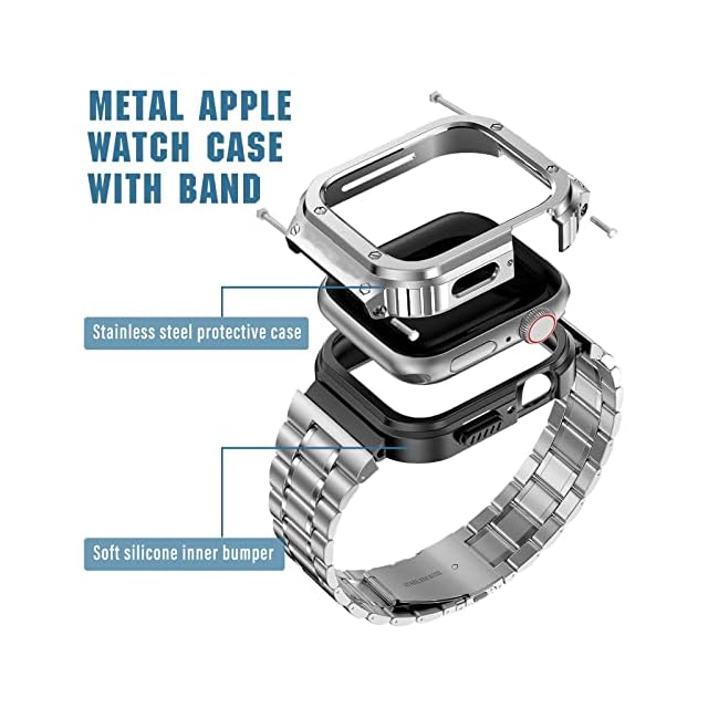 MioHHR ステンレススティール製バンド、ケース互換性 Apple Watch Bands 45mm,金属製保護バンパーカバー付き頑丈なストラップ iWatch シリーズ 9/8/7 男性用. (シルバー) | TREND DESIGN 家電専門店