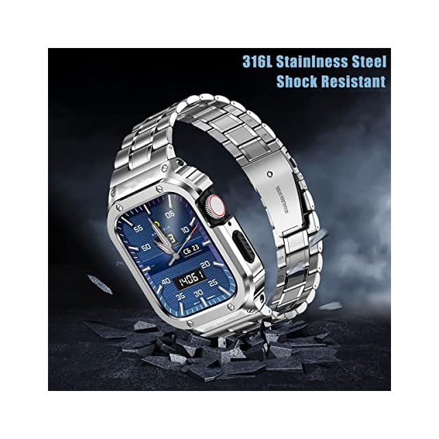 [APPLE WATCH BANDS COMPATIBLE]このケース/バンドはiWatchシリーズ9/8/7 45mmと互換性があり、時計バンドは手首のサイズ6 "-8.8"に適しており、付属のリンクを使用して短縮または延長できます 手首にぴったりフィットする取り外しツール。矢印の付いたチェーンのみ取り外し可能です。損傷を防ぐため、正しい手順に従ってバンド/ケースを取り外してください。
