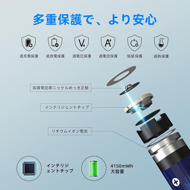 ⚡【2.9H急速充電】1.5V 4150mWh単三リチウムイオン電池4本を最短2.9時間で充電できます。充電速度が速く、時間を節約できます。(に注意:XTARのVP4L Plus、VC8 Plus、VC4 Plus、VC4SLなどの充電器は1.5Vリチウムイオン電池を充電することができません。)