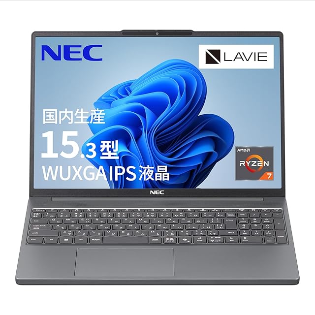 NEC LAVIE 国内生産 ノートパソコン 25夏 N15Slim 15.3 型 AMD Ryzen™ 7 7735HS メモリ24GB SSD512GB Windows11 バッテリー駆動13.8時間 重量1.6kg ルナグレー