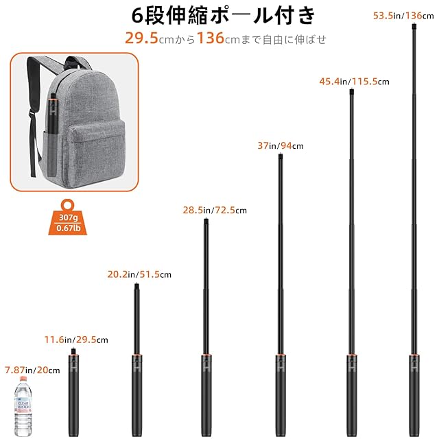 29.5cmから136cmまで自由に伸ばせ、重さはわずか307g