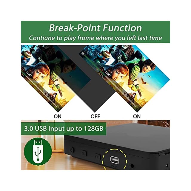【USB端子】USB 2.0ポートを搭載し、最大128GBのUSBフラッシュドライブをサポートしているため(USBフラッシュドライブは含まれません)、DVDプレーヤーで写真、ビデオ、音楽を再生できます。 対応ビデオ形式:Mpeg1 / 2、MPEG2、MPEG4、AVI / DIVX / MPG / MPEG4(mp4ではない) / VOB / FLV。 USBでサポートされるビデオソリューションは1080Pです。