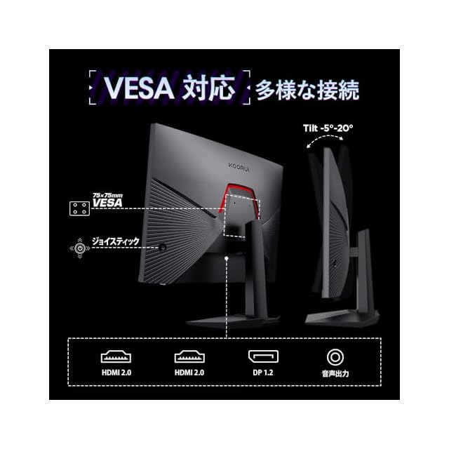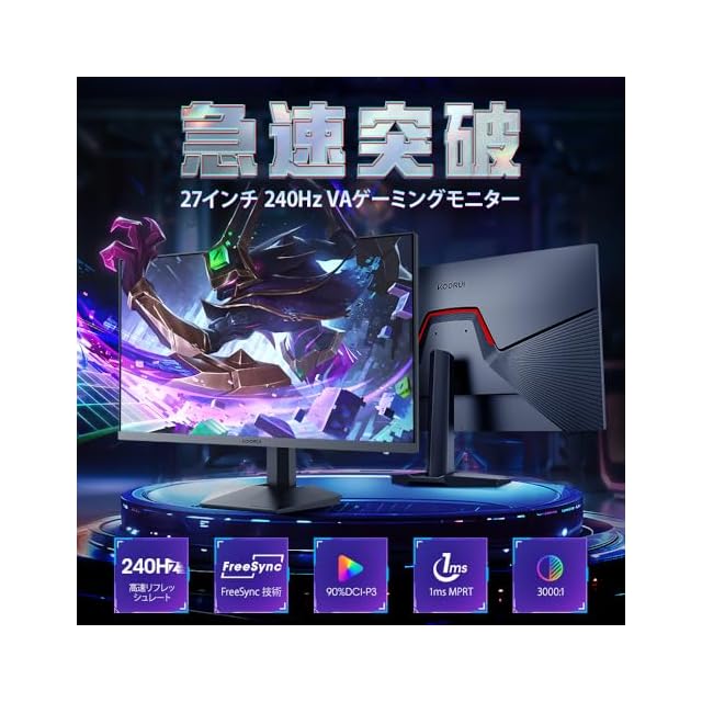 商品名:KOORUI ゲーミングモニター 27インチ 240Hz 1ms(MPRT) 応答速度 FHD(1920x1080) sRGB 100%/DCI-P3 90%/Adaptive Sync対応/HDMIx2/DisplayPort/VESA対応 pcモニター 傾き調整 GN02