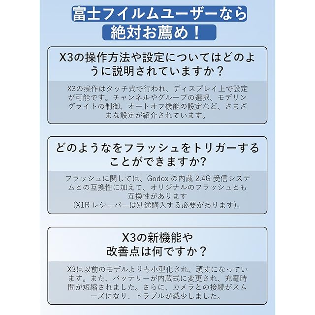 【Godox正規代理店&日本語取扱説明書】Godox X3FタッチスクリーンTTLワイヤレスフラシュトリガー フラッシュ送信機 フラッシュトランスミッターリチウム電池 急速充電可能 Fujifilmカメラに対応 telec技適マーク付け | TREND DESIGN 家電専門店