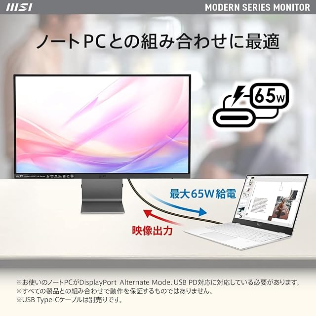 商品名:MSI モニター Modern MD271UL 27インチ/4K UHD/IPSパネル/60Hz/ブルーライトカット/アンチフリッカー/HDMI/DP/USB Type-C給電可能(最大65W)/メーカ3年