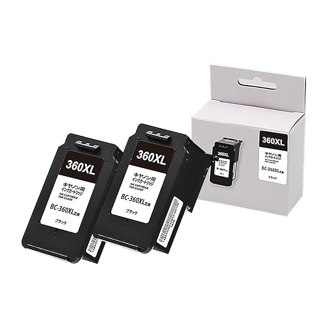 【対応メーカー】キヤノン用<br> 【セット内容】 BC-360XL(ブラック/染料/大容量/互換インク) 2個セット<br> 【対応機種】 PIXUS TS5430 / TS5330<br> 【商品特徴】 ICチップ付き残量検知可能、純正インクとの併用可能、取替え方法が純正品と同じ。 <br>お客様サポート<br>当店の製品に関して、お気軽にお問合せください。<br>※カートリッジ初期動作不良はご購入から1年間致します、万が一装着不良、インク漏れ、印刷不良などの不具合があった場合は代替品・返品の対応をいたします。<br>※商品のデザインが写真と多少違う場合がございますが、品質上問題なく使えますのでご了承ください。