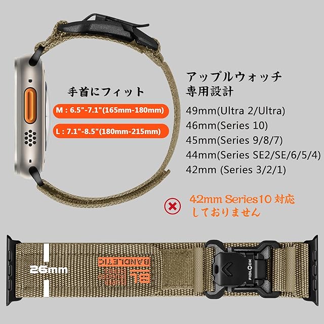 [Bandletic] アップルウォッチ用の バンド fidlock - Fidlockウォッチバンド ナイロン 交換ベルト マグネットバックル Ultra/2 10/9/8/7/6/5/4/3/2/1/SE/SE2対応 49mm 46mm 45mm 44mm 42mm(Series 10 通気性 スポーツ 柔軟 調整可能カーキ | TREND DESIGN 家電専門店