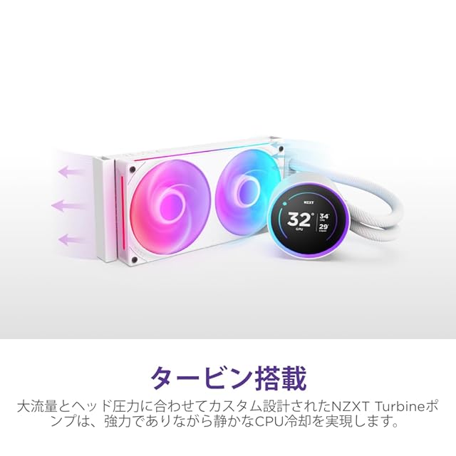 NZXT Turbine Pumpを搭載し、高圧と高流量のポンプ技術により卓越した冷却性能を実現します。長時間の安定動作が可能です。