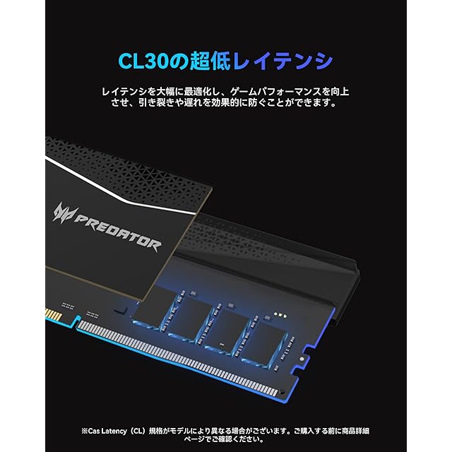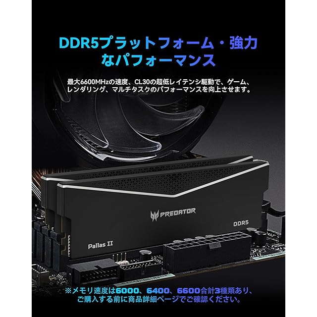 商品名:Acer Predator Pallas II DDR5 6000MHz 32GB(16GBx2枚) CL32 デスクトップPC用メモリ DDR5 シリーズ (PC5-48000) Intel XPM 3.0準拠 AMD EXPO メモリキット ブラック BL.9BWWR.432