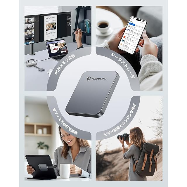 【高速転送 2000MB/s】YottamasterポータブルSSDは最大20Gbpsの転送速度を提供し、2GBのファイルをたった1秒で転送できます。これによりファイル転送時間が大幅に短縮され、業務効率が向上します。注:20Gbpsの転送速度を実現するには、USB 3.2 Gen2x2インターフェースと20Gbps対応のデータケーブルを使用する必要があります。他のどのインターフェースでも20Gbpsの速度を達成することはできません。AppleデバイスのThunderboltインターフェースとの互換性の問題により、外付けSSDを使用する際の最大転送速度は10Gbpsに制限されます