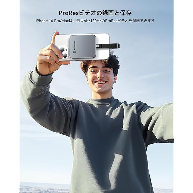 【4K ProResビデオ録画対応】磁気デザインの外付けSSDは、iPhone 15/16 Pro/Maxでの4K ProResビデオ録画をサポートしています。第2の交換不要でリアルタイムの録画と保存が可能となり、いつでも人生の美しい瞬間を捉えることができます