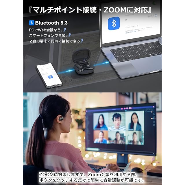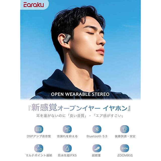 商品名:【有線級音質・エア感すごい】 Earaku (イアラク) オープンイヤー イヤホン ワイヤレスイヤホン 超軽量 耳を塞がない 耳掛け式 究極のフィット感 イヤフォン 骨伝導の革新 DSP機能 オープンイヤーヘッドホン 業界トップ音質 指向性音伝送技術 音漏れ無し 日本語音声 Bluetooth5.3/マルチポイント接続/ENC通話ノイズリダクション (ブラック)