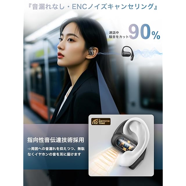 【音指向性伝導技術・音漏れ防止】空気指向伝導原理に基づき、オープン型のイヤホンの構造を最適化し、音の指向性伝播を実現しました。発音ユニットが耳の穴を完全にカバーし、音がより正確に耳に入るように、「高音質」と「低音漏れ」の両方に対して最適な効果を実現しています。また、イヤホンの内部には、音を遮断するための音響シールド素材が使用されます。これは、内部の音が外部に漏れ出さないようにするためのバリアとなります。音の逃げ道を最小限にし、音の漏れを抑制します。