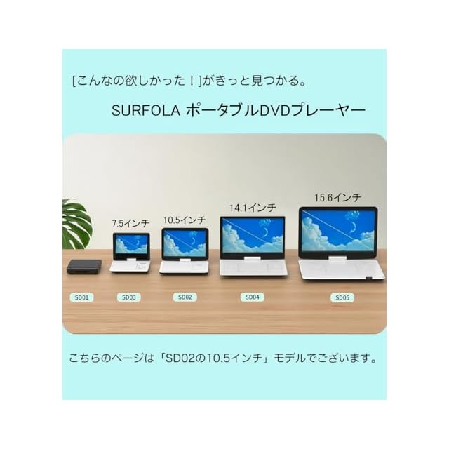 Surfola ポータブルDVDプレーヤー 12.5型 10.5インチ液晶 4~5時間再生可能 リージョンフリー再生 地域制限なし USB/SDカード再生 270度回転対応 TV同期 AV入出力 ラストメモリー機能搭載 SD02【ブルーレイ非対応】ブラック | TREND DESIGN 家電専門店