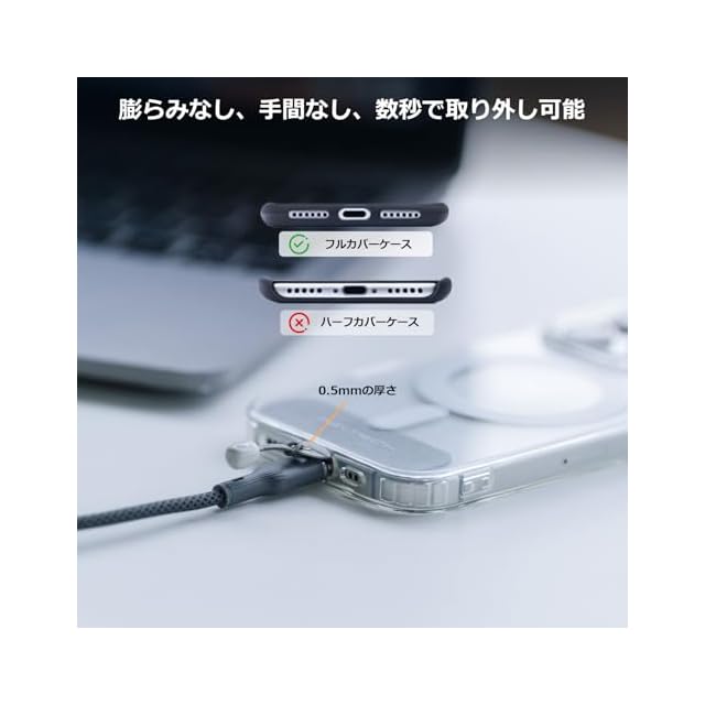 超薄型セキュアマウントタブ:0.5mmの破れにくいマウントタブは、スマートフォンケースにシームレスにフィットし、ケースが膨らむことなく装着できます。