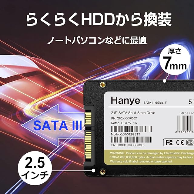 Hanye Q60 内蔵型SSD 2.5インチ 7mm、安心の国内サポート、 メーカー5年。