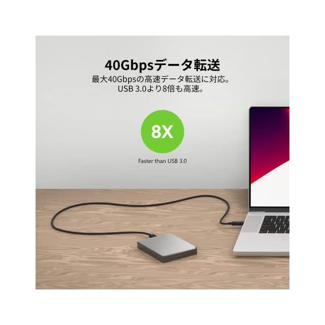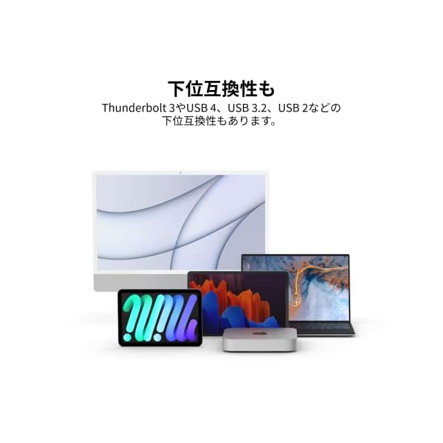 Thunderbolt 4対応デバイスを接続するUSB-C to USB-Cケーブル